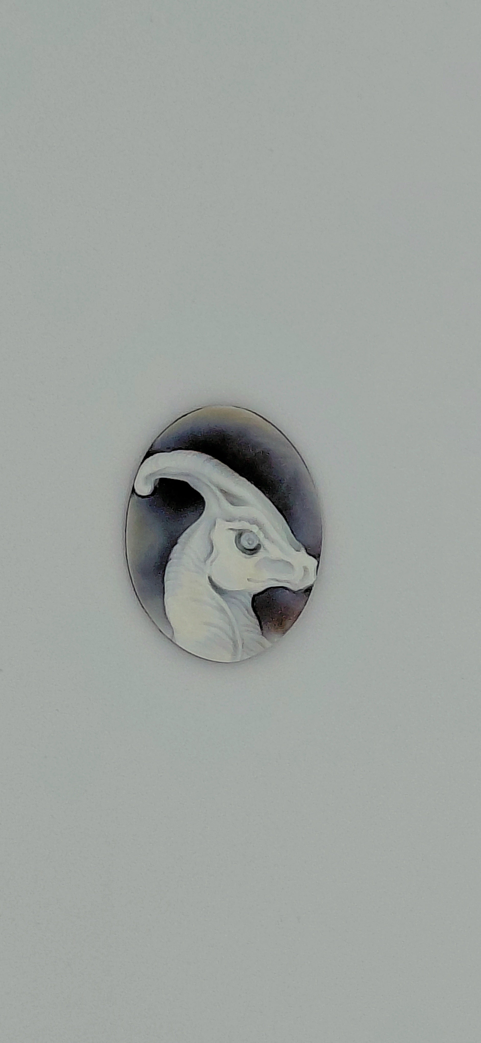 CAMMEO " DINOSAURO PARASAUROLOPHUS "CONCHIGLIA SARDONICA OVALE