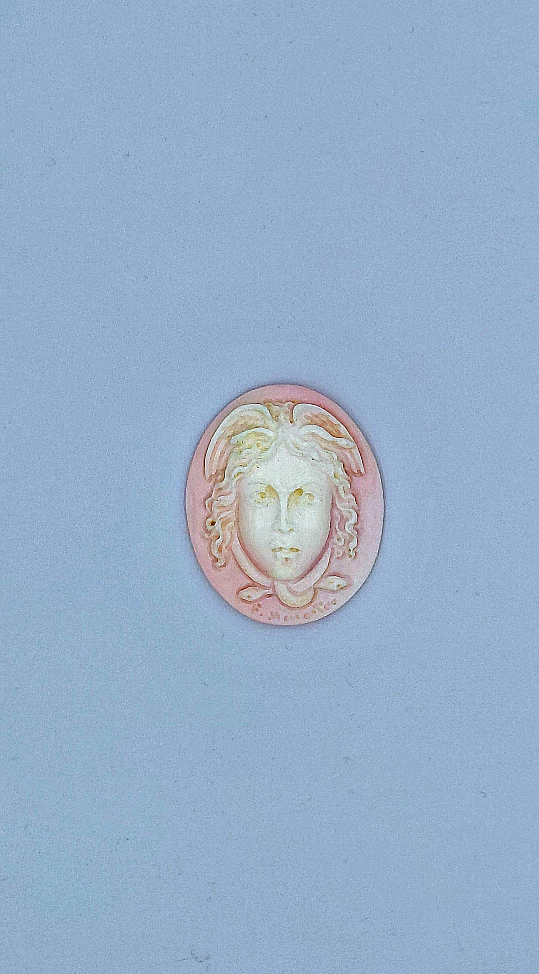 Cammeo "GORGONA " conchiglia rosa , manifattura artigianale di Torre del Greco , lavorazione artigianale molto accurata . Cammeo forma ovale misura altezza 40mm larghezza 33mm. Prezzo e senza montatura, e alla vostra richiesta si può anche montare al vostro piacimento come anello,ciondolo,bracciale. Questi cammei rappresentano una lavorazione artigianale esclusivamente fatta a mano, per questo non ci sarà mai un pezzo uguale ad un altro,quindi diventano pezzi unici