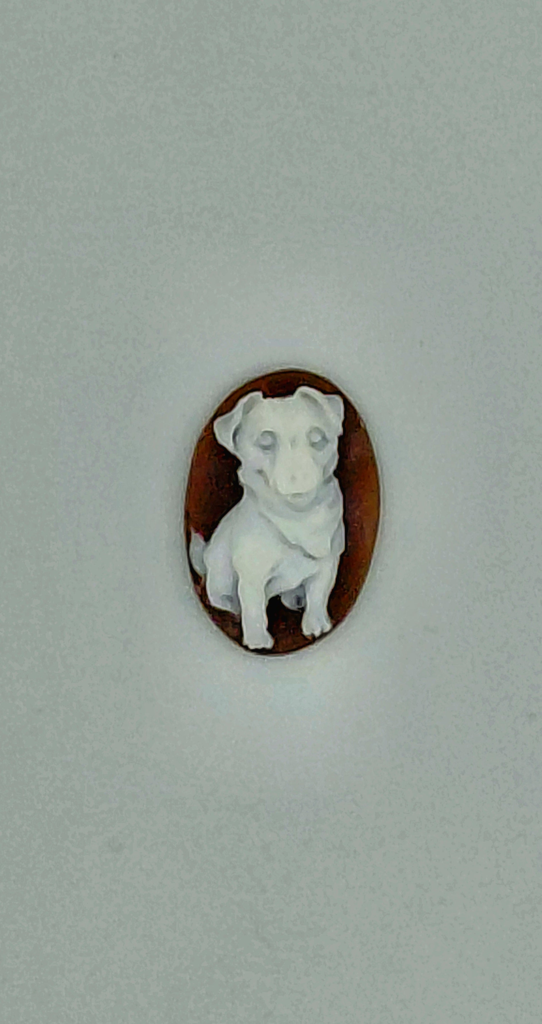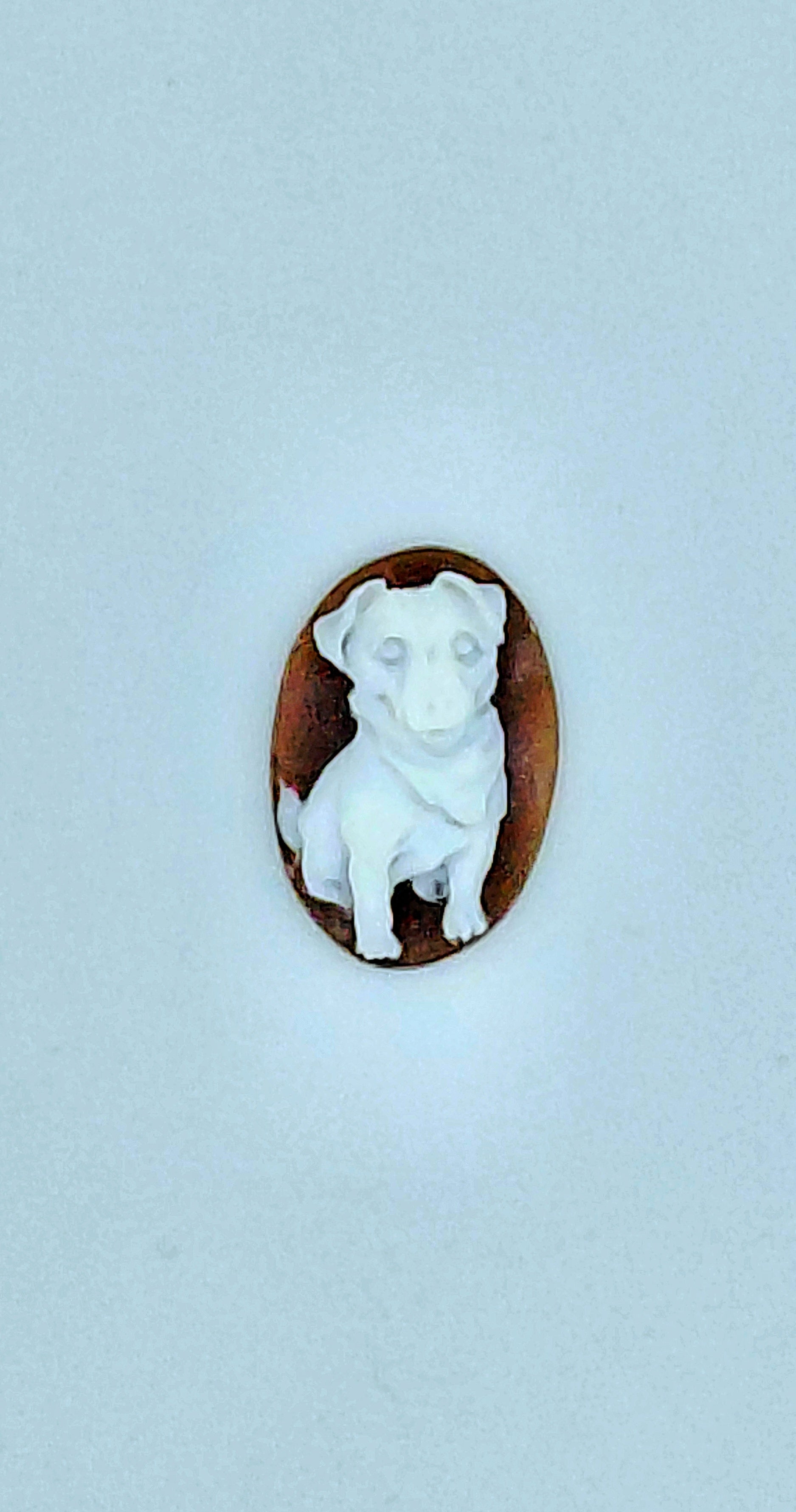 CAMMEO " JACK RASSELL TERRIER CON SCIARPA " CONCHIGLIA SARDONICA