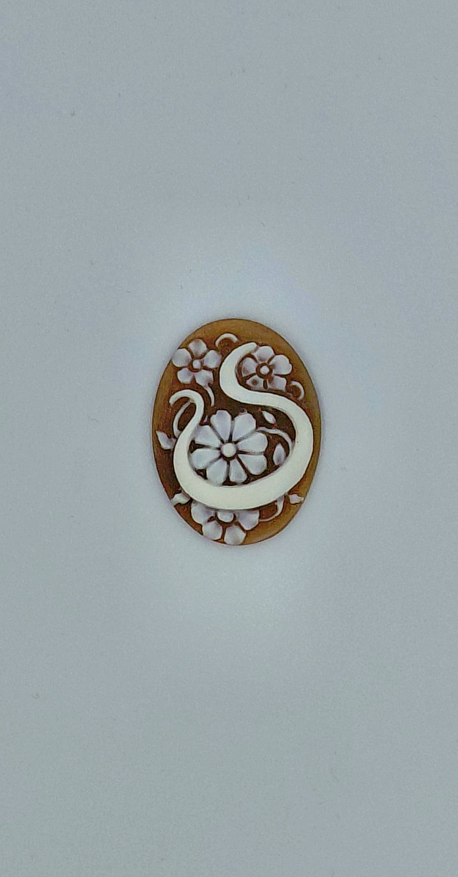 CAMMEO "LETTERA S STILIZZATA CON FIORI " CONCHIGLIA SARDONICA
