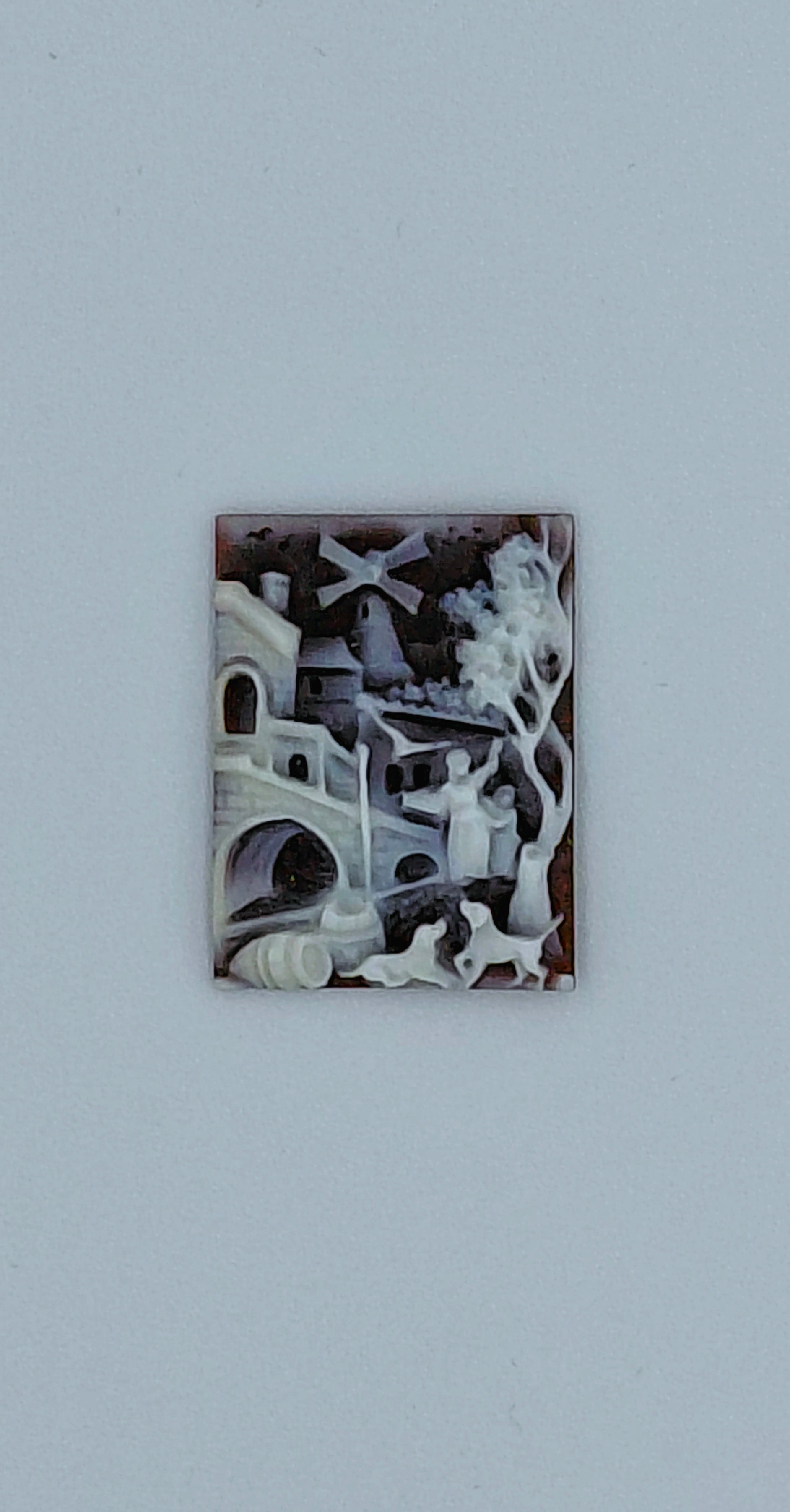 Cammeo " PAESAGGIO 2 " conchiglia sardonica cassis madagascariensis , manifattura artigianale di Torre del Greco , lavorazione artigianale molto accurata e luminosa. Cammeo di forma rettangolare misura altezza 25 mm larghezza 19 mm.Questa incisione in microscultura fatta con le sapienti mani dell'artista, trasforma la conchiglia in una minuziosa opera d'arte. Prezzo e senza montatura e alla vostra richiesta si può anche montare al vostro piacimento come spilla,ciondolo,bracciale Questi cammei rappresentano una lavorazione artigianale esclusivamente fatta a mano, per questo non ci sarà mai un pezzo uguale ad un altro,quindi diventano pezzi unici