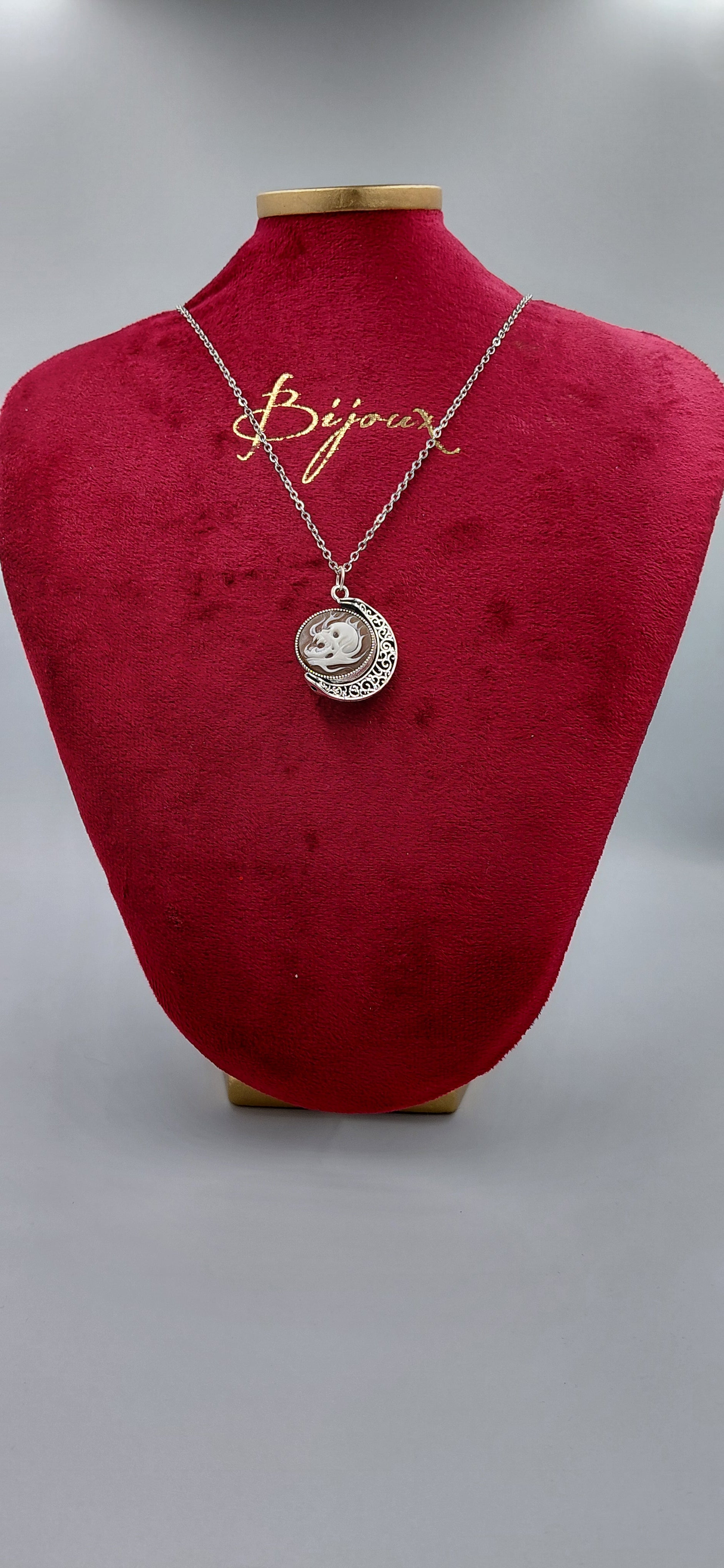 Raffinato cammeo in conchiglia sardonica incastonato in metallo raffigurante un teschio nello stile Ghost Rider, sapientemente inciso da maestri artigiani di Torre del Greco. Misura 17,6mm, dimensione ideale per pendenti, anelli e creazioni gioielliere di pregio. Ogni pezzo è unico, frutto di una tradizione secolare di intaglio cammeistico campano. La qualità della sardonica e la precisione dell'incisione garantiscono dettagli nitidi e una finitura impeccabile. Perfetto per collezionisti e appassionati di gioielleria artisanale.Ciondolo in metallo compreso di catenina in metallo lunghezza 45 cm + 5 cm .