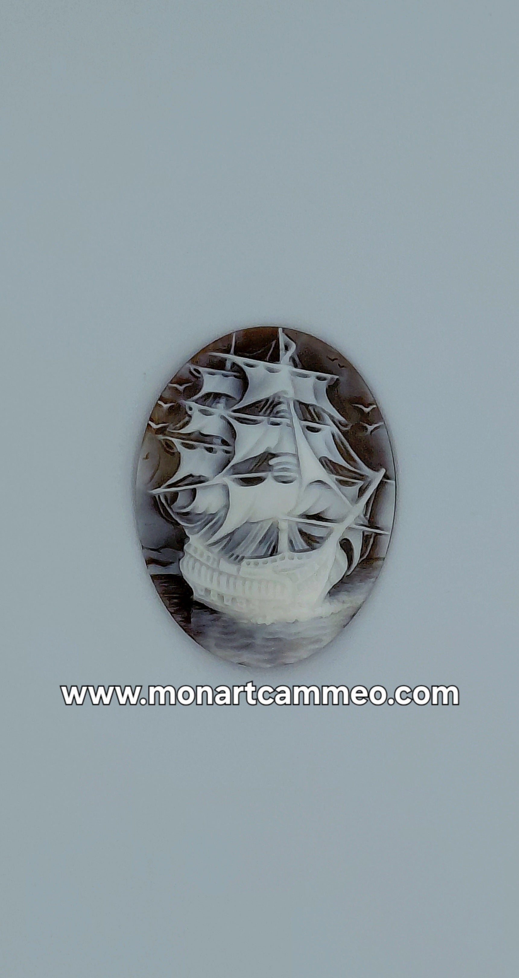 CAMMEO "VELIERO CON GABBIANI " CONCHIGLIA SARDONICA