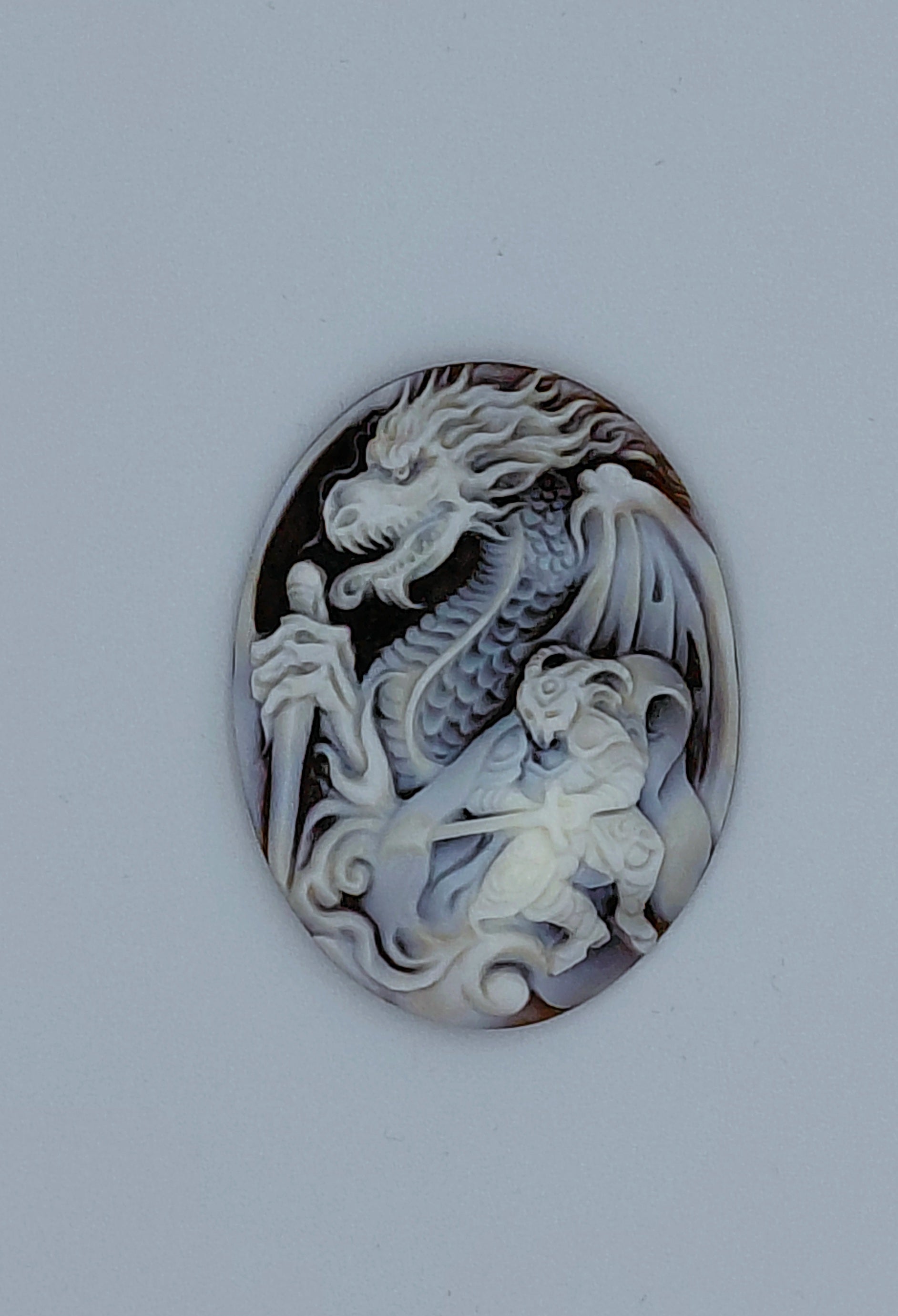 CAMMEO "Drago con guerriero" VERTICALE CONCHIGLIA SARDONICA